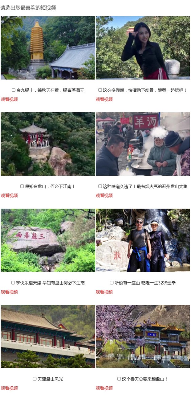 “遇见盘山”网络短视频大赛,本次活动作为第二届“你好,天津”网络短视频大赛的分站赛之一,由蓟州区委宣传部主办,津云新媒体、渔阳生态集团共同承办,活动依托抖音、快手、视频号、新浪微博、小红书、哔哩哔哩、津抖云等七个平台征集作品,在网络投票阶段,为体现公开、公平、公正原则,广泛接受群众监督,现按规定程序对候选作品进行公示。公示期为3个自然日,公示时间自2025年9月18日至9月20日。